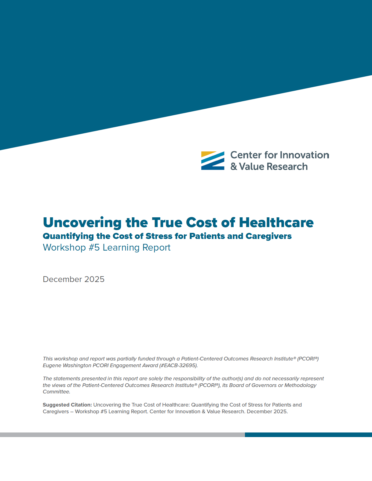 This is the fifth workshop of our six-part series within the Center’s Patient-Centered Economic Impacts Project. This virtual workshop focused on the economic impacts of stress that patients, families, and caregivers experience as they navigate complex and chronic health conditions. While research focused on the financial burden of healthcare exists, this workshop shifted the lens to examine how the stress of navigating the healthcare system—independent of direct financial costs—can itself have economic implications. Stress—emotional, physical, and financial—is not just a human burden but an economic one. The goal of the workshop was to better understand how this form of stress affects individuals, families, and the broader healthcare system, and explore approaches to account for the financial impacts of stress in research and decision-making.